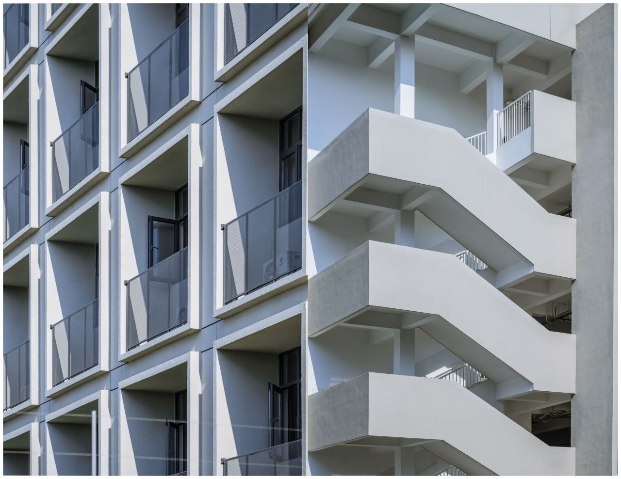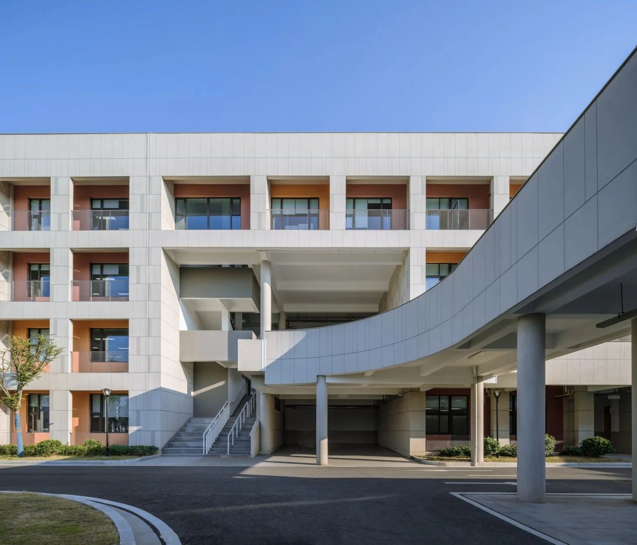 建筑最终呈现的效果是由项目的有限预算决定。用最简单的真石漆外墙饰面,靠建筑体量的虚实对比与比例关系来呈现建筑的力量和美感。