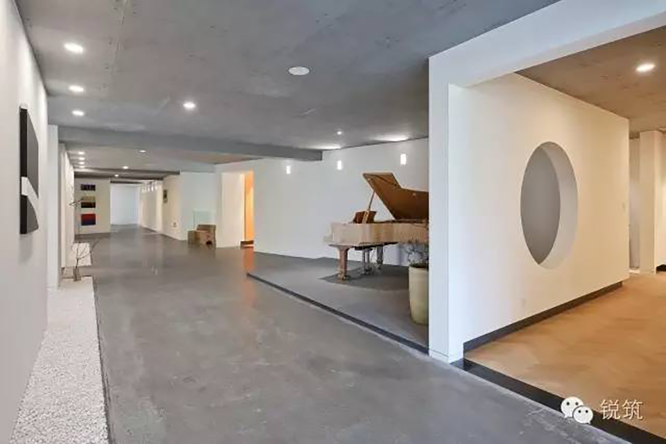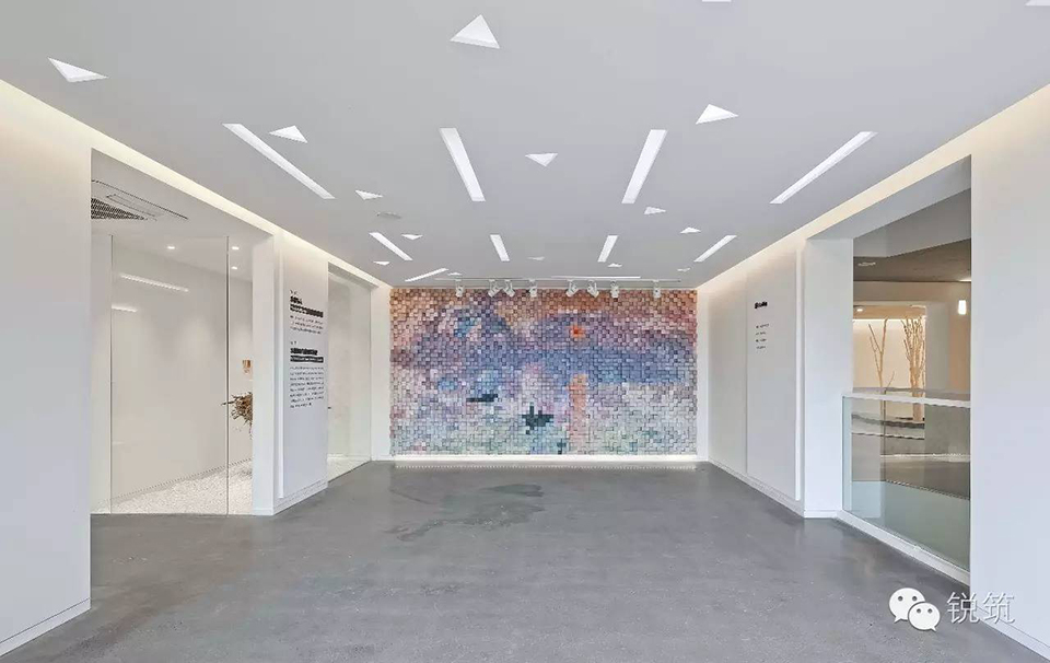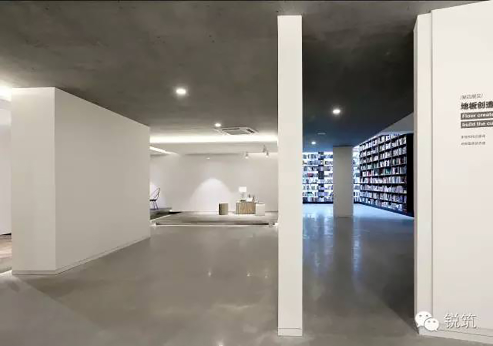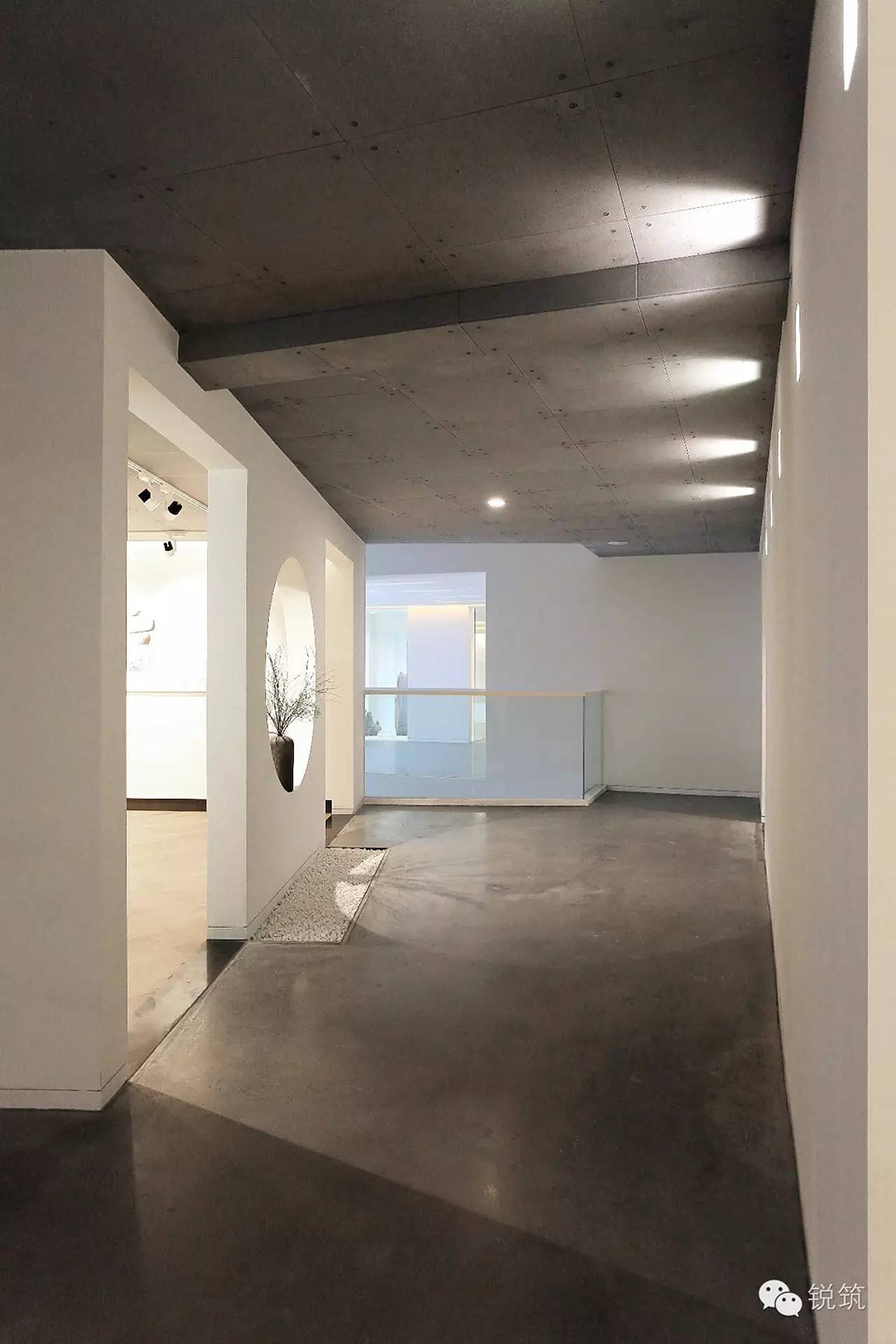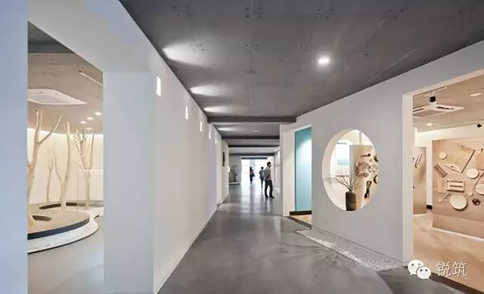 材料:空间的自由和丰富的动线决定了材料的节制和单一。地面采用水泥自流平,顶面以水泥压力板相对应,墙均为白色涂料,墙和地面的处理和槽钢过渡,强调墙体的空间独立性,以便更好得呈现展品。