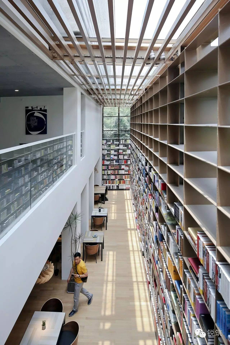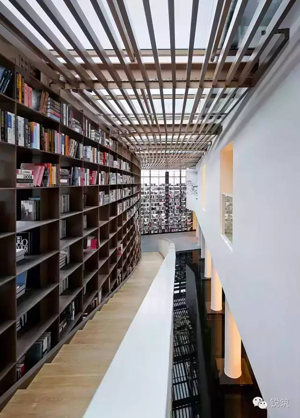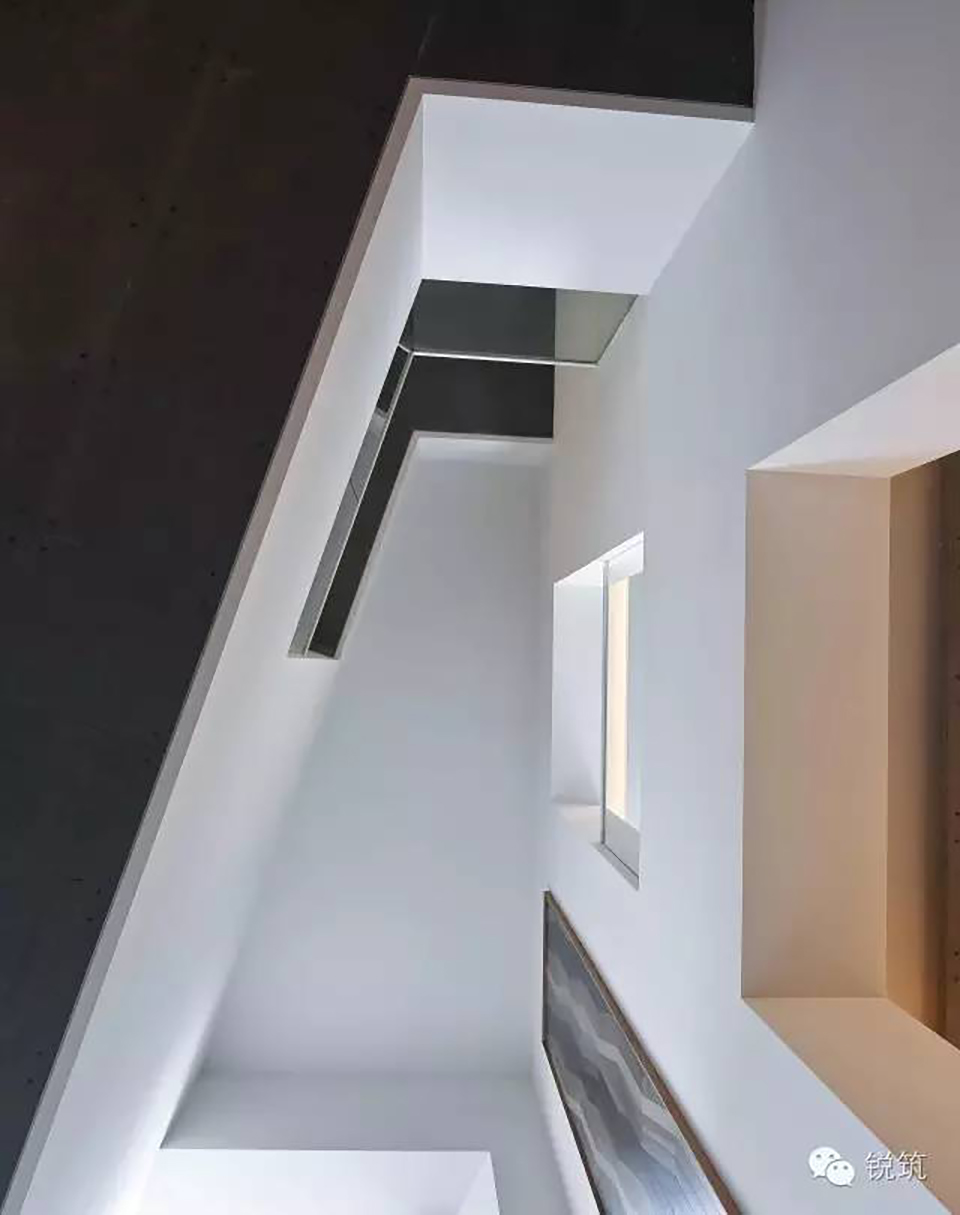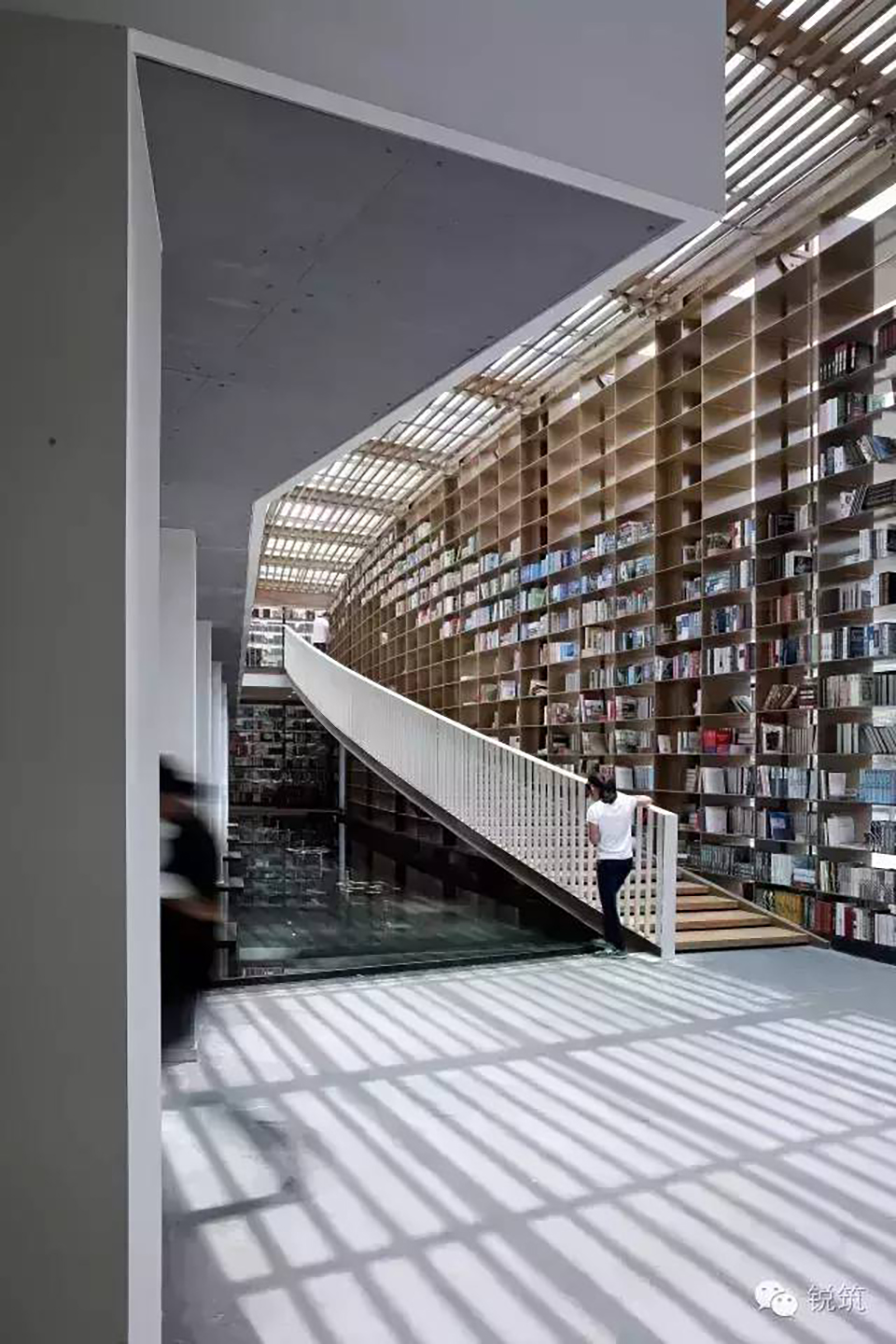建造:在局部打开二层楼面后,建造的重点就是外加的楼梯空间。这是整个建筑的高潮,也类似于园林中的中央庭院。所有的一切活动都以此为中心展开。中厅空间是以书架墙为表皮,以钢板为构造元素建造而成,连接上下的楼梯无疑是整个空间的焦点。