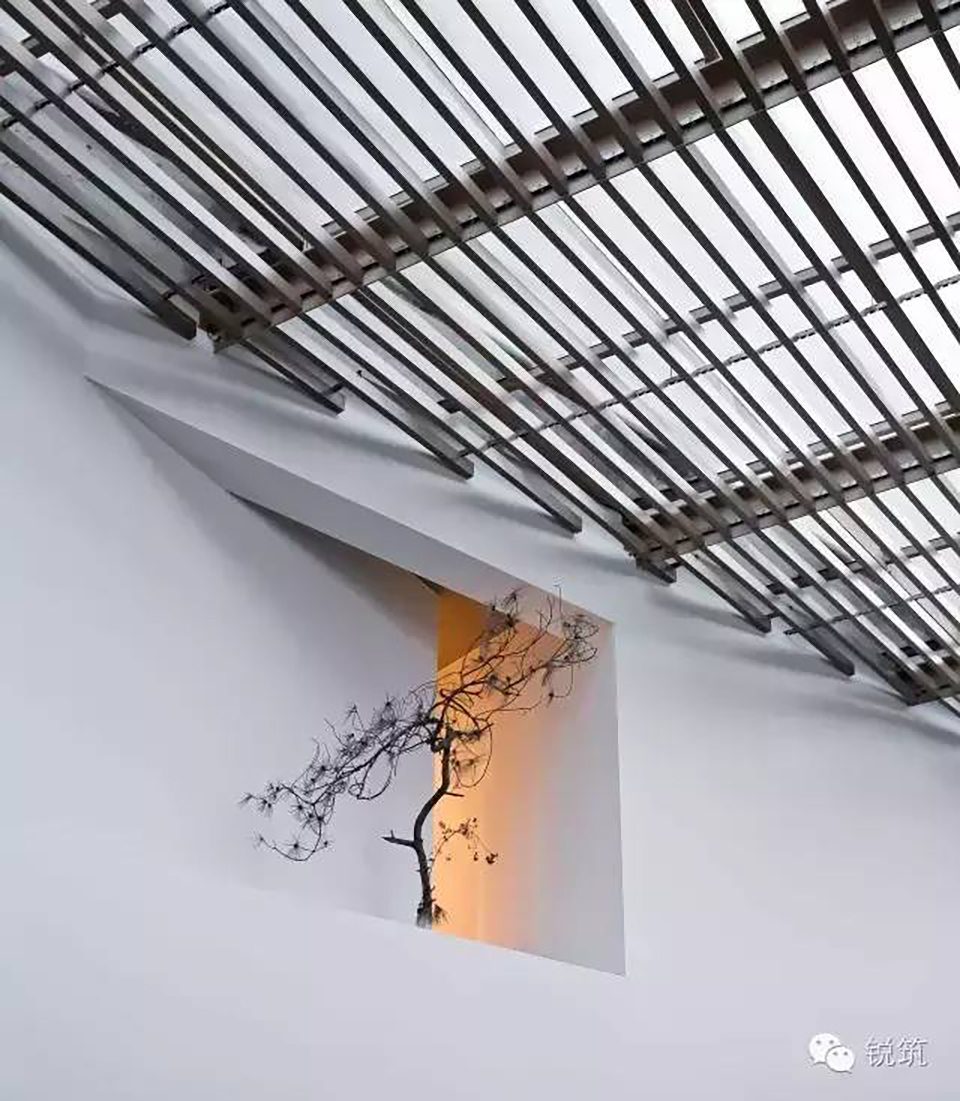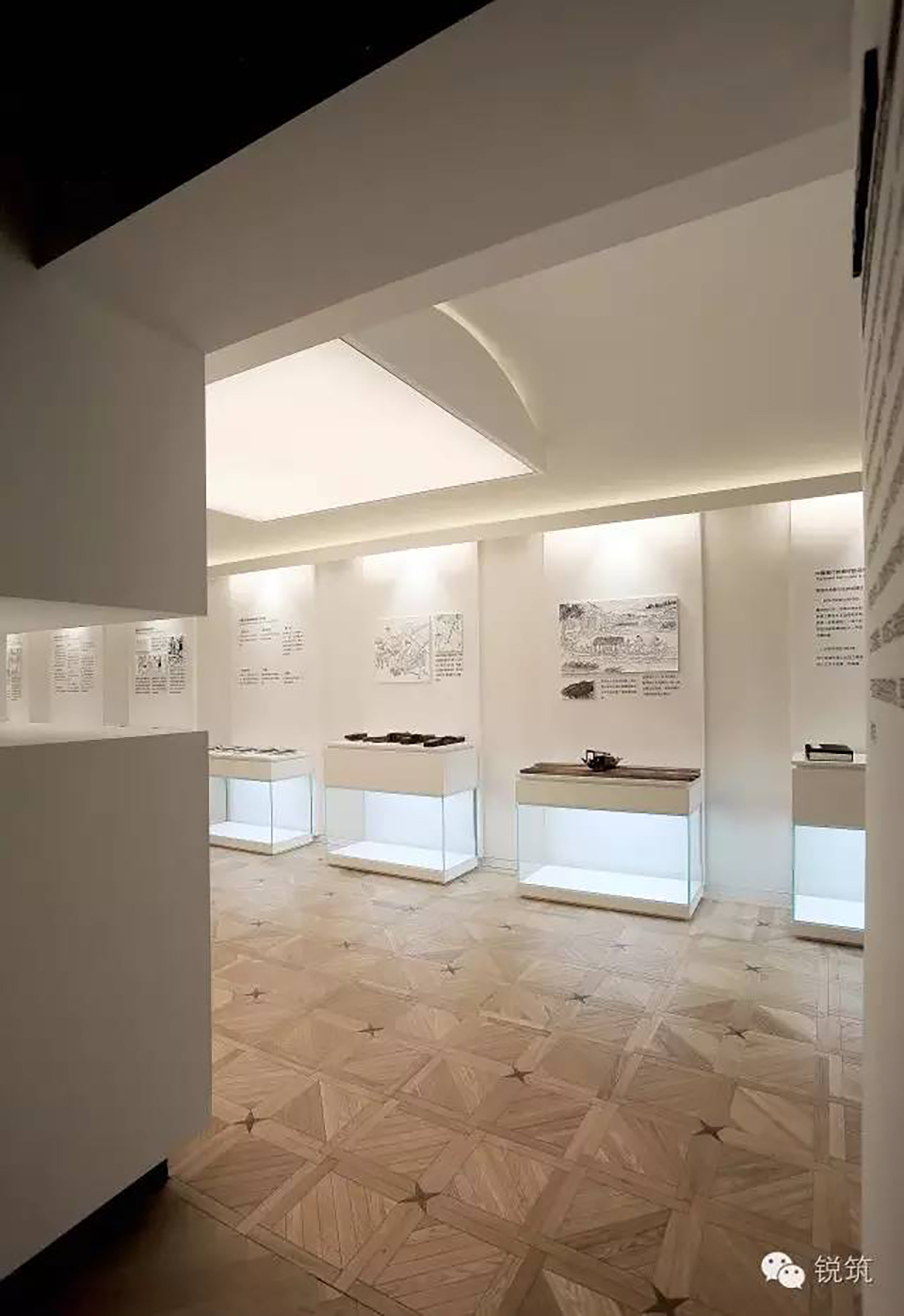 释放:获得自由第一步要做的是弱化原有框架的存在感。借助符合南浔地域文化的园林概念,通过抽象和提炼,将空间简化为纯粹的相对关系。最终的结果和园林中的构成一样,功能单元退到了建筑的次要位置,而相互之间的关系成为了空间的主体。这种释放一方面解放的原有框架的束缚,更重要的是解放了空间,提供了一个自由的场所。在这个自由的空间内,建筑似乎就转变成了一种背景氛围,而其目的就是让展品成为真正的主角。
